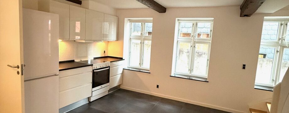 Nyrenoveret lejlighed midt i byen og med direkte adgang til det hyggelige torv